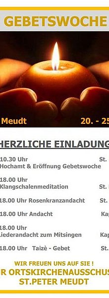 Dieses Jahr findet wieder die Gebetswoche statt. Jeden Tag vom 20.10 bis zum 25.10. Weitere Informationen finden Sie in hier: